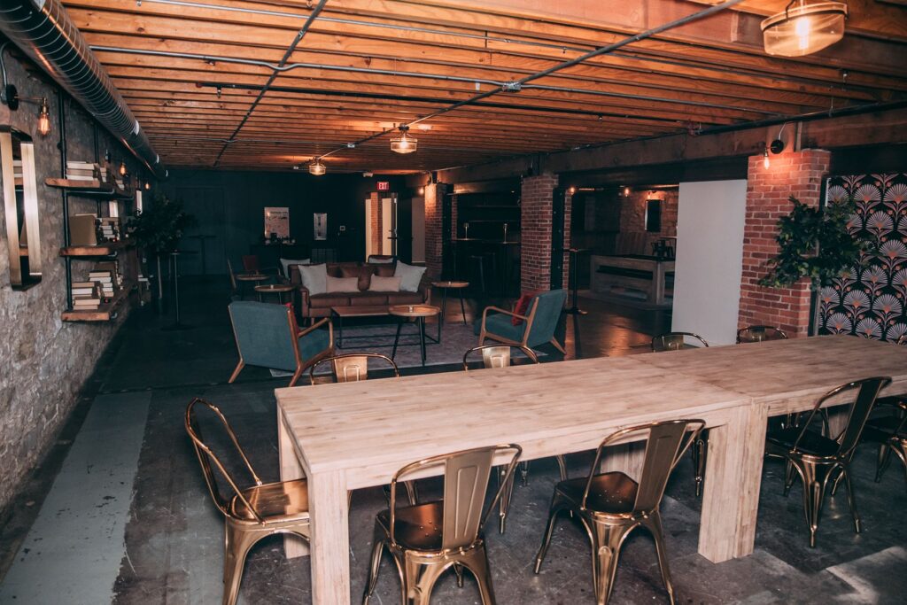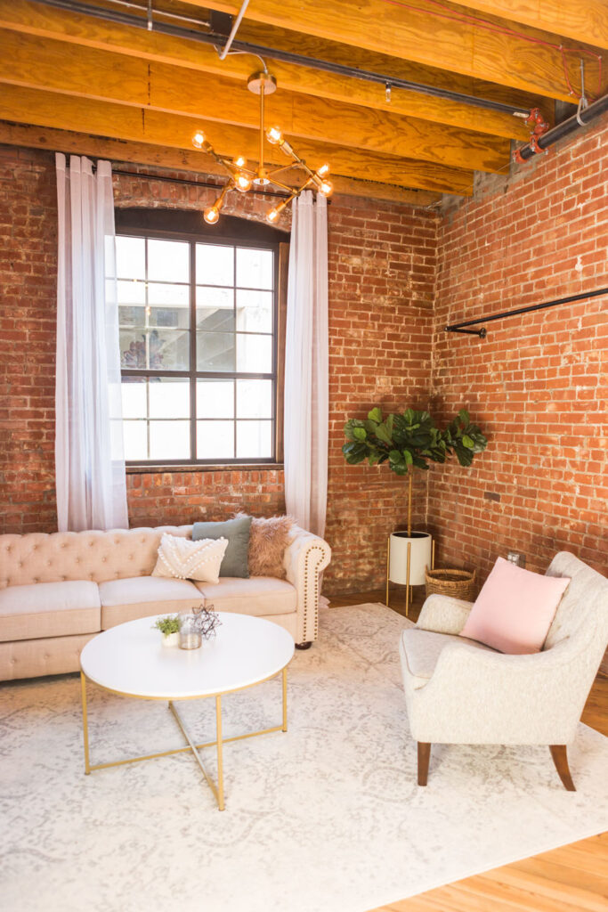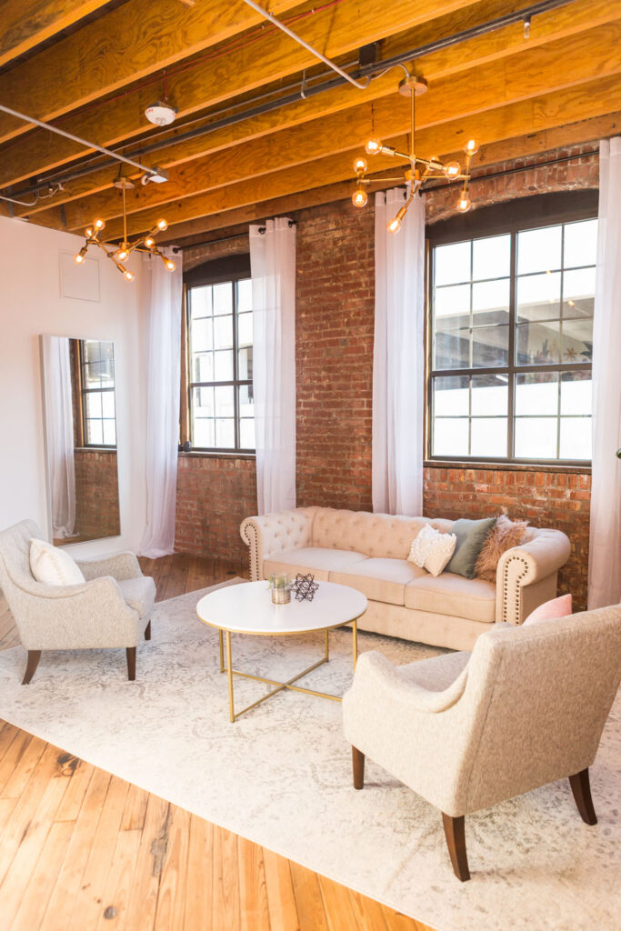 Our modern venue, large enough for 200 people, was designed to be blank canvas to suit any style for your event. With tall ceilings, urban brick walls, and gorgeous natural light — we can't wait to see what you'll do with our space!